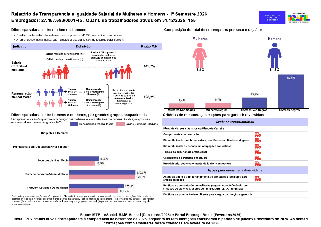 Página inicial » Notícias » RELATÓRIO DE TRANSPARÊNCIA E IGUALDADE SALARIAL – Lei nº 14.611 de 3 de julho de 2023